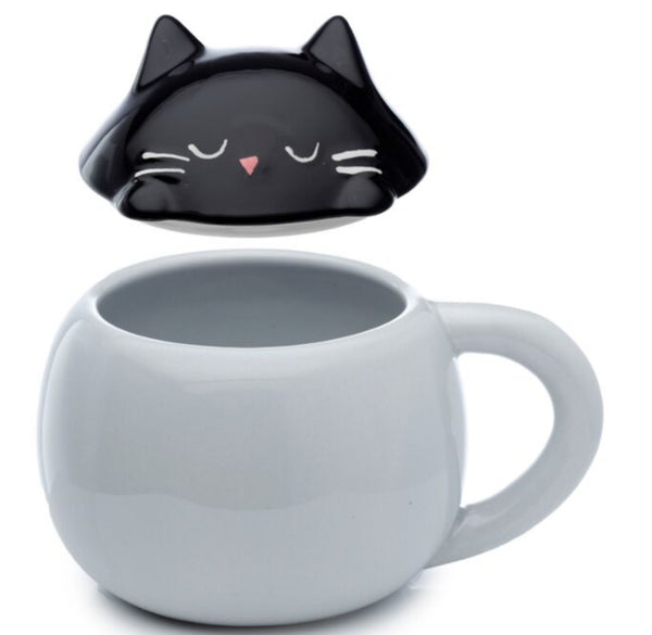 Feline Fine Black Cat Peeping Lid Ceramic Lidded Animal Mug