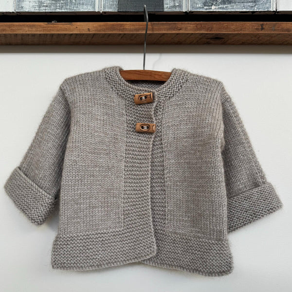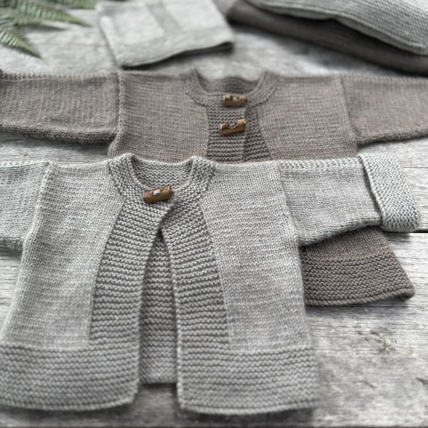 A cosy everyday layer for little ones, the kimono-inspired Mio Jacket & Hat are simple to knit and easy to wear. With clean lines, soft garter ridges, and timeless simplicity, they’re designed for lasting comfort; generous sizing creates an easy, flowing fit. The body is worked seamlessly in one piece from the hem to the armholes, keeping finishing minimal. Fronts and back are then worked flat to the shoulders and joined neatly. Garter-stitch bands frame smooth stocking stitch, with options for one to three buttons or toggles.