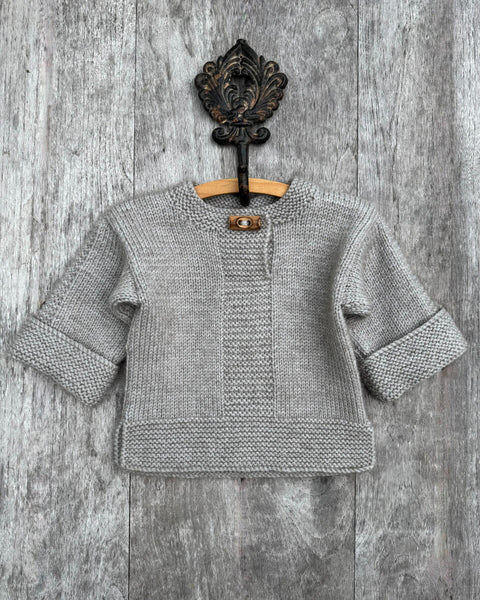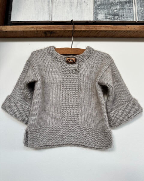 A kimono-inspired pullover with clean lines and soft garter texture, designed for lasting comfort and everyday play.